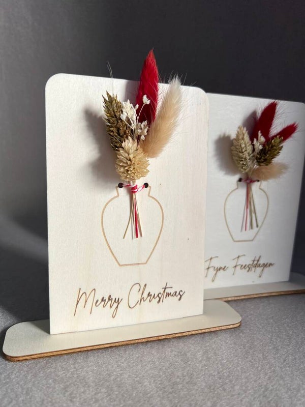 Een origineel kaartje dat een mooi plaatsje kan krijgen in huis. Extra lang geniet met de droogbloemen.