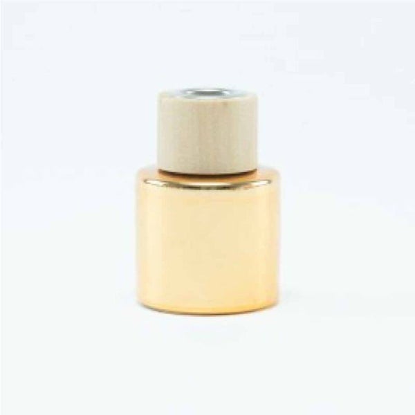 Dit cilindervormig parfumflesje is afgewerkt met houten schroefdop. Het flesje is gevuld met de geur "Paradise". Dit betoverend zoet aroma van kamperfoelie met een vleugje vanille en caramel op een basis van witte musk, amber en sandalwood brengt de magie van witte zandstranden en tropische landschappen in je woonkamer.