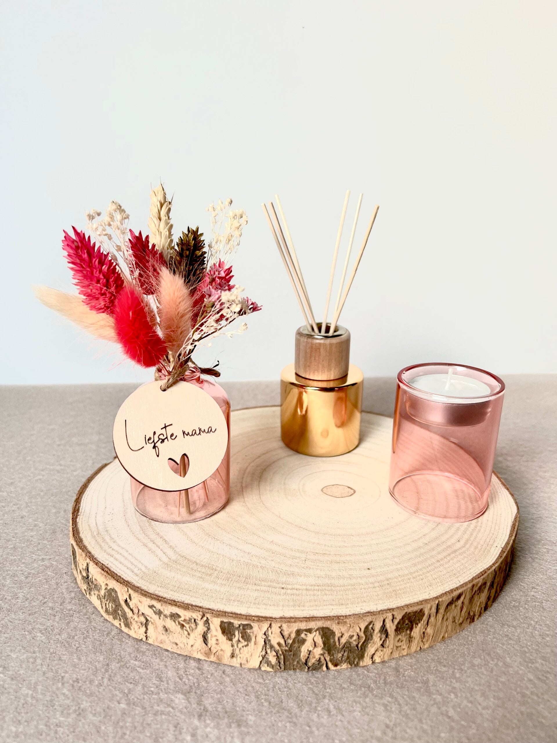 Zet jouw mama in de bloemetjes! 🌸 Het parfumflesje is gevuld met een rijke combinatie van amber en cederhout. Deze houtige ondertonen zorgen voor een langdurige geurervaring die uw huis vult met een rustgevende en uitnodigende ambiance.
